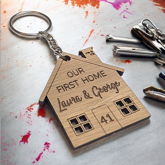 Our First Home Personalised Keyring Set | House Warming Gift | Wooden Keyring