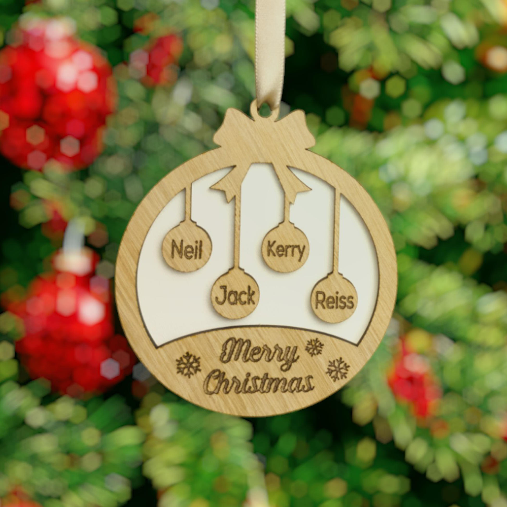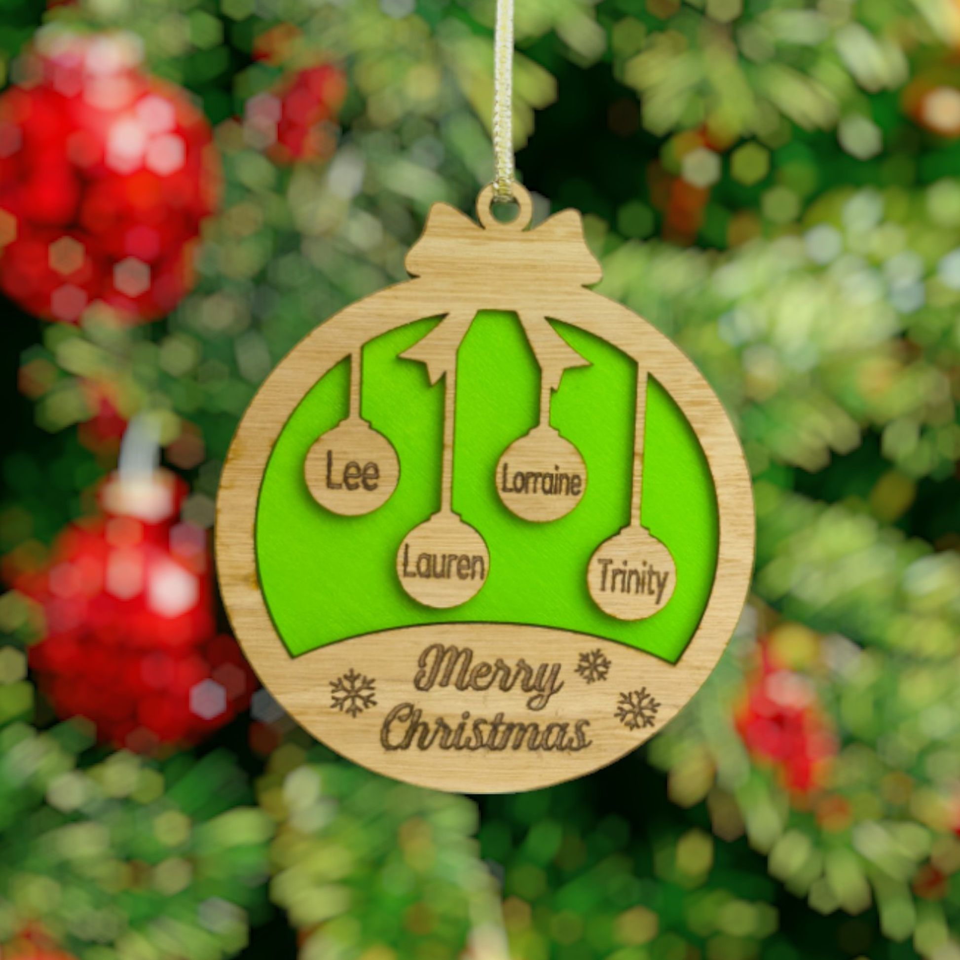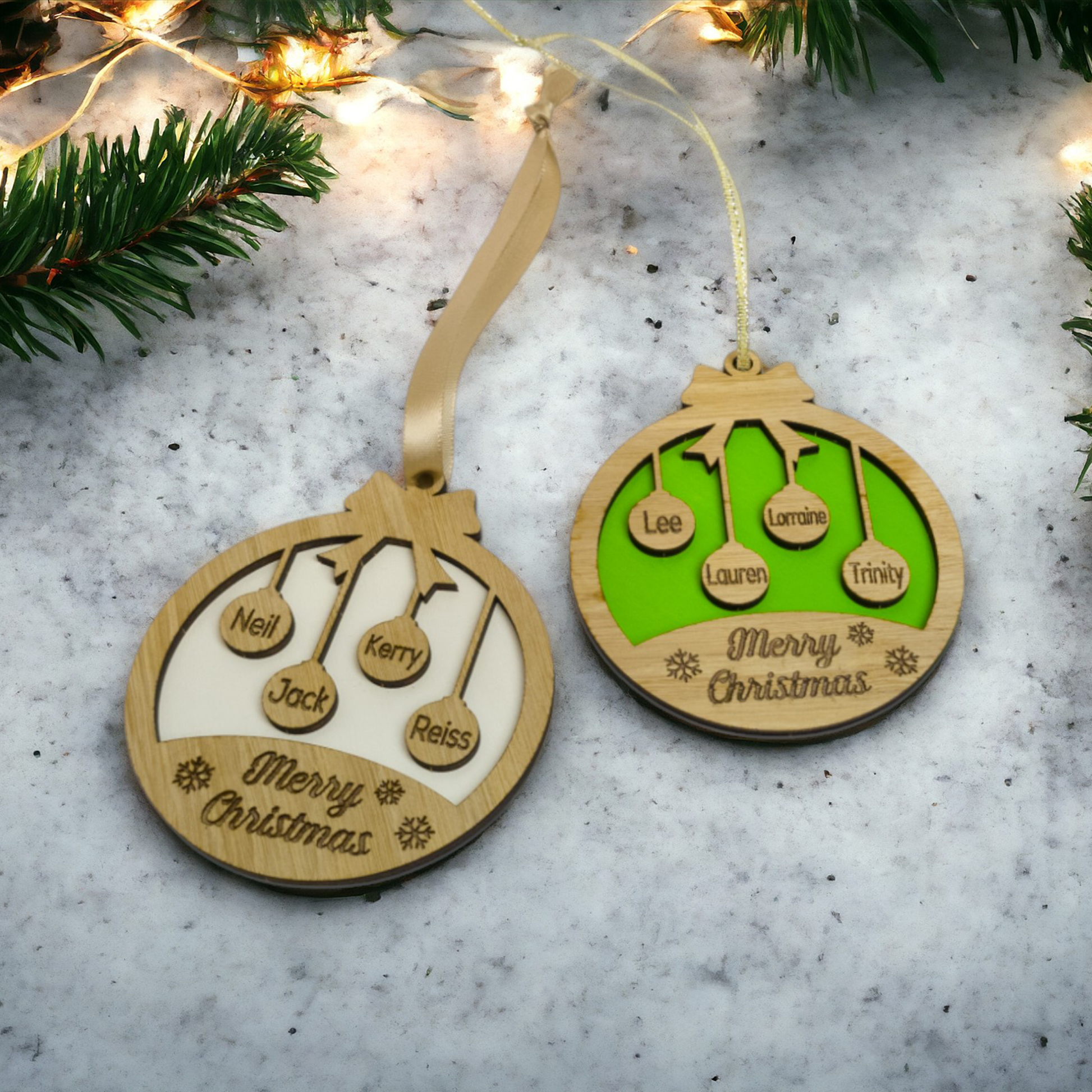 Christmas Personalised Baubles | Family Names | Tree Decoration | Laser Engraved