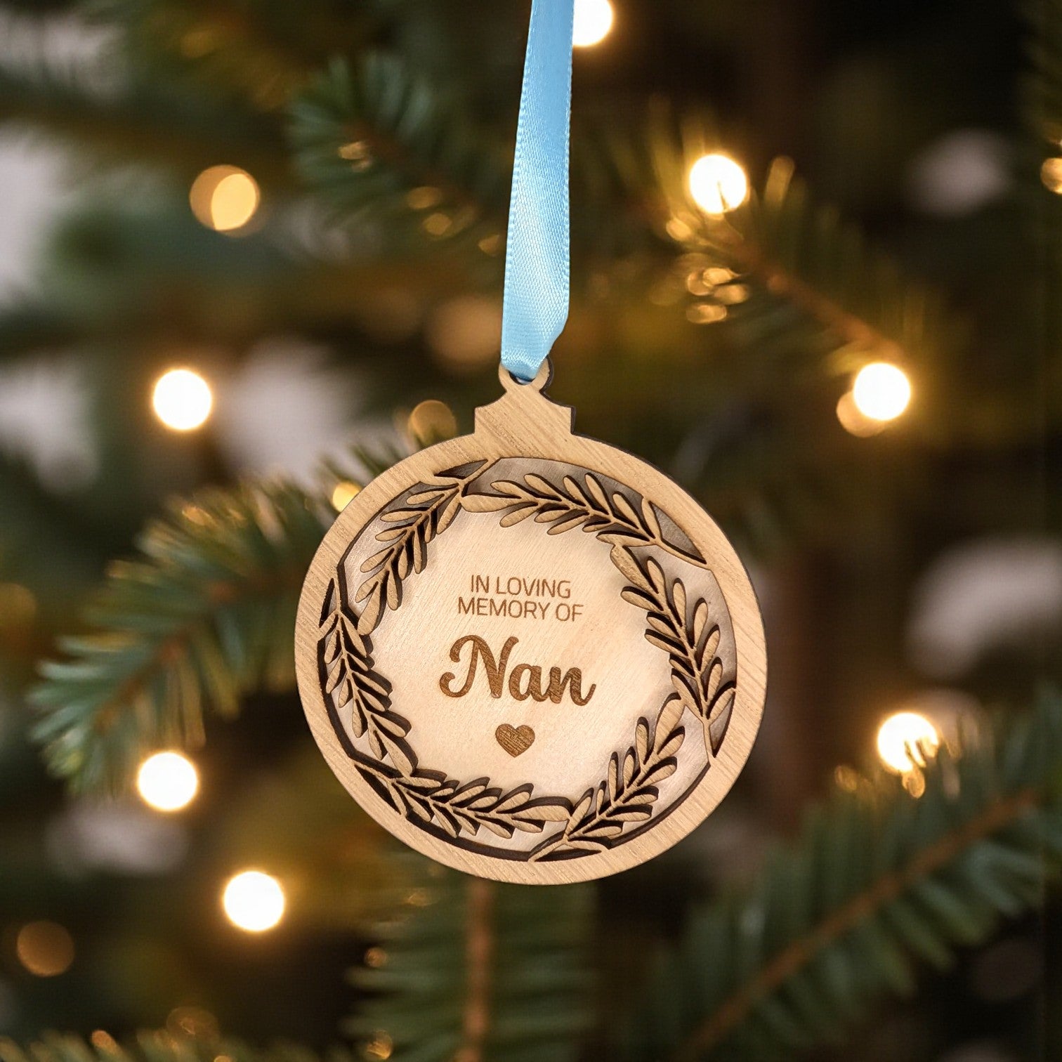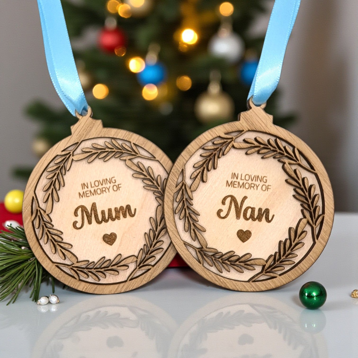 🎄 Personalised In Loving Memory Wooden Christmas Bauble – Memorial Keepsake