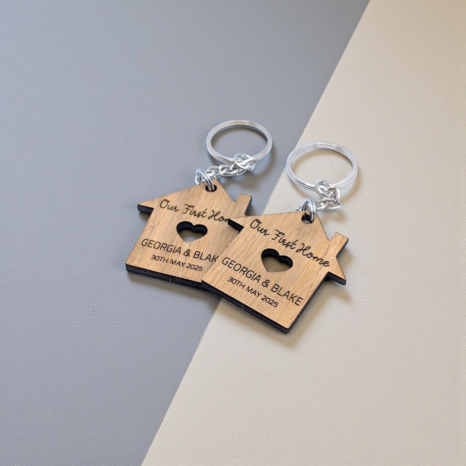 Personalized Engraved Wooden Keyring Set – Our First Home Keepsake
